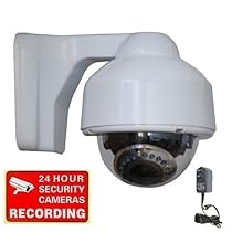 This weatherproof CCD camera adopts a new generation DSP technology which can provide high quality images and excellent products performances. It has beautiful practical integrated wall mount. Three-dimensional bracket design in dome making it is easy and convenient to operate. Its specific functions: auto electronic shutter control auto switch of color and black/white modes low power consumption vari-focal lens back light compensation control three-dimensional bracket. The integrated heavy-duty case has a cable management system. It concealed wiring that protects the camera from vandalism. Power supply is included.